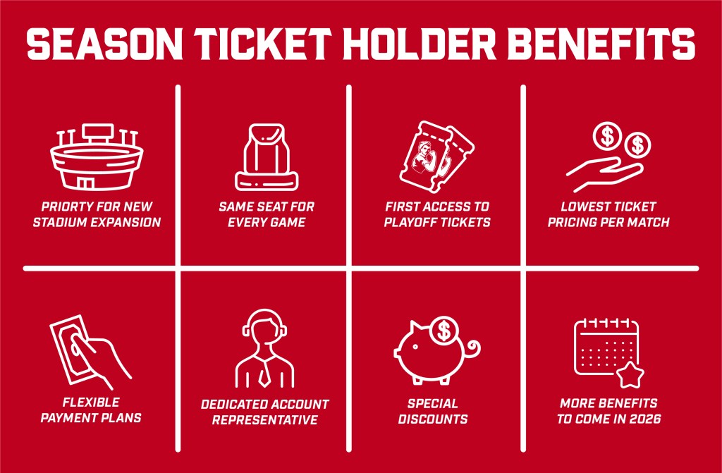 Renew your season tickets now, or place your deposit to become a new Season Ticket Holder and lock in your seats for every game! Get playoff ticket access, exclusive discounts and priority access for new stadium expansion seating. Don’t miss your chance to be part of the action!